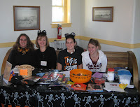 Toward the end of the afternoon I called up Doug (who actually had a day off!) and asked him to bring in Riker for a photo. We took one of the loaner costumers – a Dracula cape – and tied it around his growing neck (this is probably the only year where doggie costumes will actually fit him!). We got a family photo done, but it also gave us a chance to introduce him to some other nice dogs. It seems like whenever we take him for a walk (which is about 2-3 times a day) we hear lots of dogs behind fences and inside houses, but never see any out and about with their owners. I may just have to borrow a dog from the Society and take the two out for a romp!